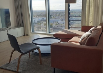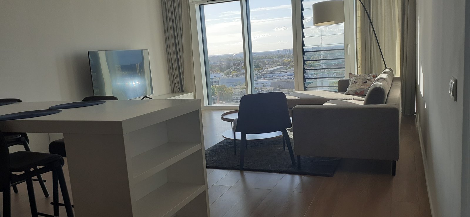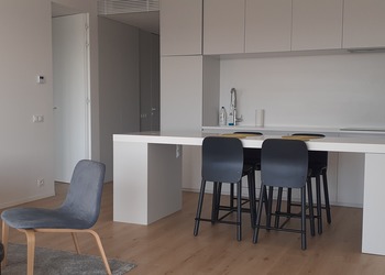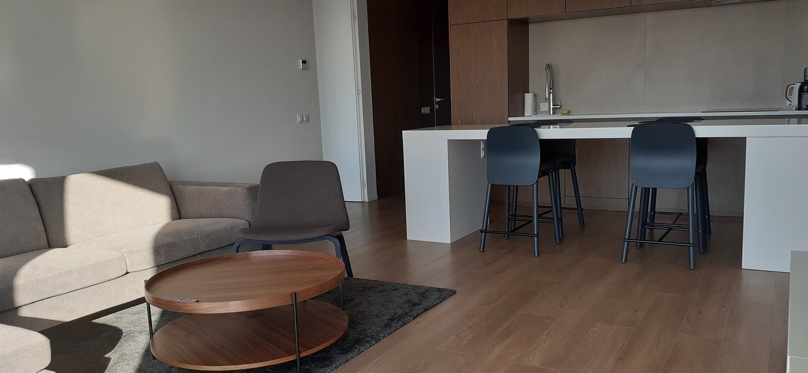 Powierznia apartamentu 69 m2 składa się z przestronnego salonu, aneks kuchenny z wyspą w pełni wyposażony w niezbędny sprzęt codziennego użyku ekspres do kawy, lodówka piekarnik, płyta indukcyjna...