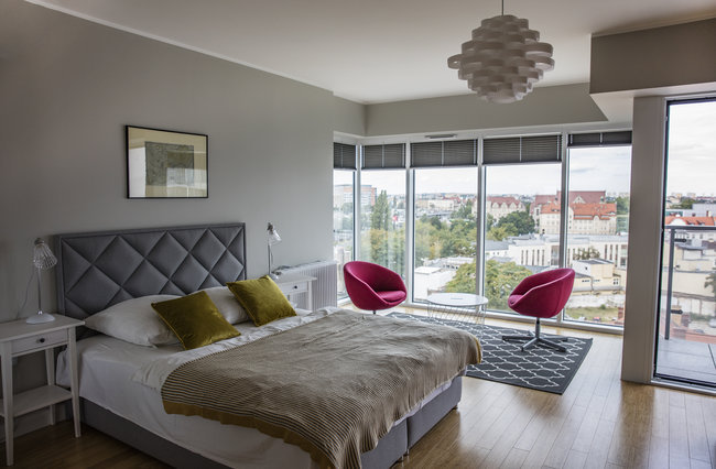 nowoczesnie i oryginalnie urządzony apartament usytuowany jest na 8 pietrze 16 piętrowego apartamentowca. Mieszkanie zostało urządzone w nowoczesny i fumkcjonalny sposób, aby zapewnić Państu komfort i wygodę. Apartament dysponuje balkonem z widokiem na panoramę miasta. W budynku czuwa całodobowa ochrona w recepcji budynku. Do dyspozycji posiadamy miejsca parkingowe w hali garażowej pod budynkiem.