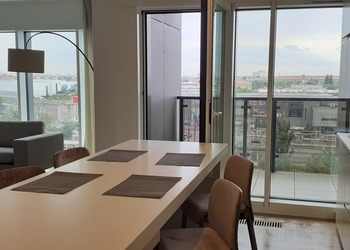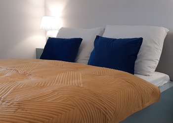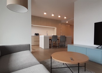 Nowoczesny oryginalnie urządzony dwupokojowy apartament 56 m2 usytuowany jest na 10 piętrze 21 apartamentowca. Apartament składa się z sypialni z podwójnym  łóżkiem typu king size,  pokoju dziennego z częścią wypoczynkową oraz przestronnej łazienki z kabiną pryszyśnicową i dobrze wyposażonej kuchni.