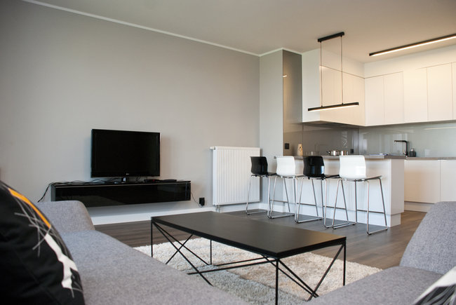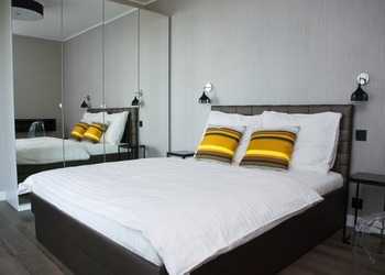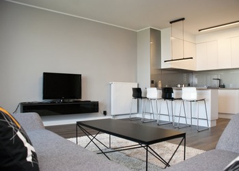 Luksusowy, oryginalnie urządzony dwupokojowy apartament usytuowany jest na X piętrze nowego budynku. Apartament składa się z sypialni z podwójnym i wygodnym łóżkiem oraz szafą, pokoju dziennego z podwójną kanapą i telewizorem oraz przestronnej łazienki z wanną i dobrze wyposażonej kuchni.