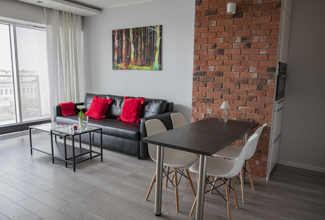 Nowoczesne mieszkanie o indywidualnym wystroju mieszczące się na 10 piętrze z 16 piętrowego apartamentowca w centrum Poznania przy ul. Towarowej 37. W bezpośrednim sąsiedztwie MTP, Centrum Handlu Sztuki i Biznesu Stary Browar oraz Poznań City Center z dworcami PKP i PKS. Budynek wyposażony jest w całodobowy monitoring oraz ochronę.
