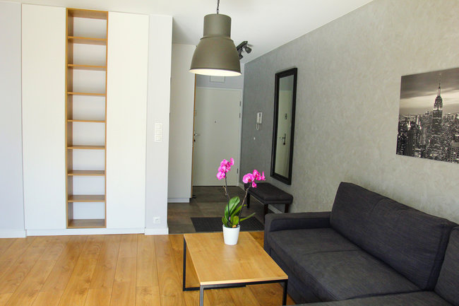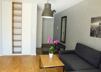 Nowoczesne mieszkanie o indywidualnym wystroju mieszczące się na 10 piętrze z 16 piętrowego apartamentowca w centrum Poznania przy ul. Towarowej 37. W bezpośrednim sąsiedztwie MTP, Centrum Handlu Sztuki i Biznesu Stary Browar oraz Poznań City Center z dworcami PKP i PKS.