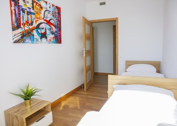 Dodatkowym atutem mieszkania jest duży taras na który wychodzi się z każdej sypialni i salonu.